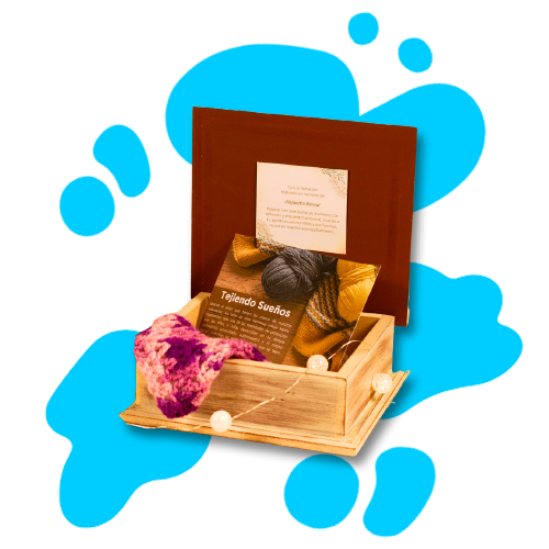 Este regalo incluye una mini cobija tejida en crochet, como símbolo de protección y cuidado. Como esta, cada niña y niño atendido en Jugar para Sanar reciben una en gran tamaño para acompañarle en su proceso de sanación.